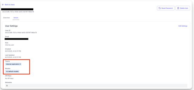 Let's also set the default models to no-default-models. This means a user can only create keys within a team.